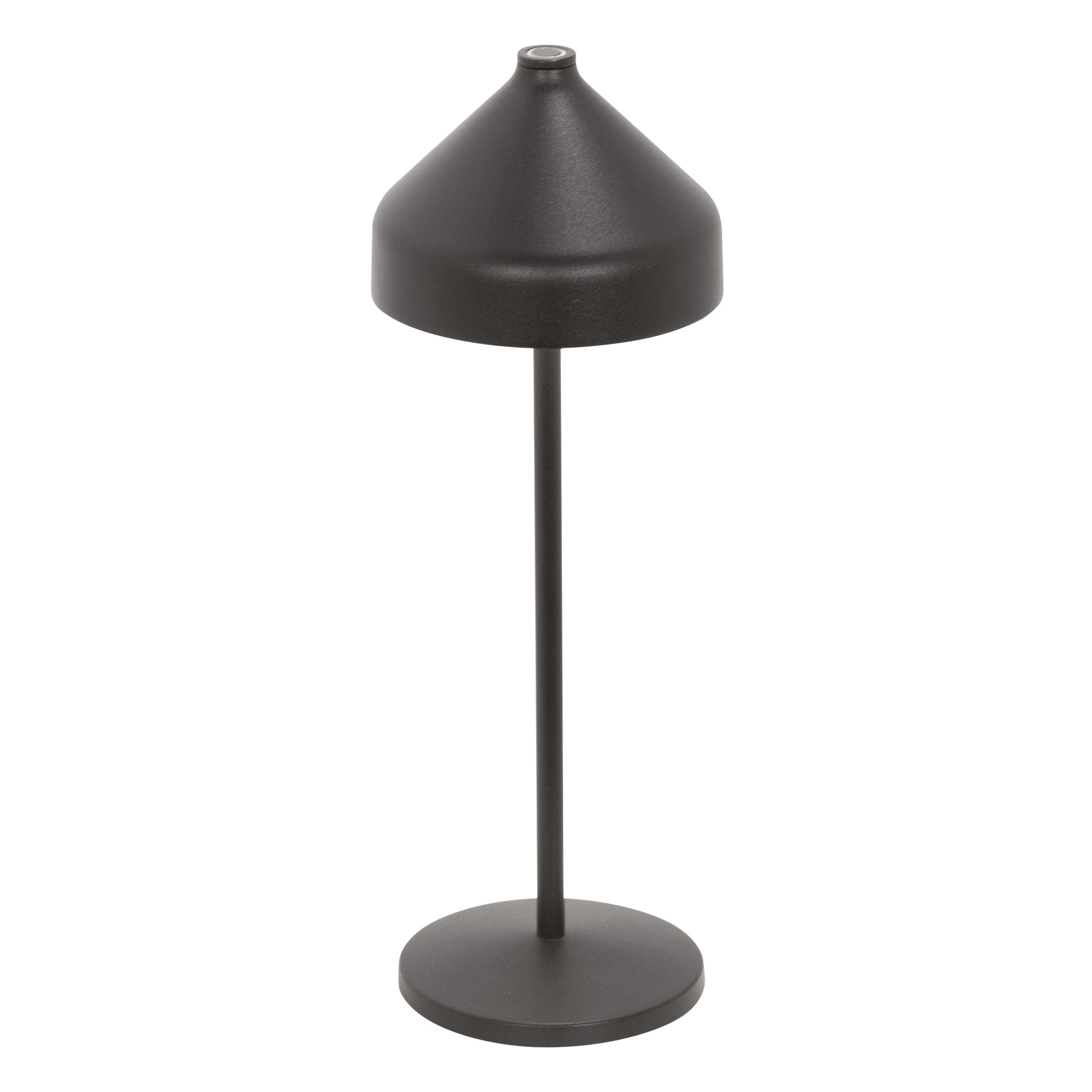 Kabellose, wiederaufladbare Akku Tischleuchte. Sie wird mit einem Haken und einer Silikonkappe geliefert, mit denen sie in eine Hängeleuchte umgewandelt werden kann. Ein Touch-Schalter an der Oberseite des Kopfes erlaubt es, die Leuchte einzuschalten, die Lichtintensität zu regulieren und die Lichtfarbe zu wählen. Dank der hohen Schutzart kann die Leuchte auch in Außenbereichen verwendet werden.