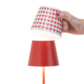 Add a touch of love to your home for Valentine's Day with the exclusive metal covers, Love Edition. Designed to fit your Poldina cordless lamp perfectly, these metal covers are decorated with delightful thematic motifs that bring warmth and cheer to any space.Innovative printing technology allows for high definition quality, making your lamp a special item to celebrate love in any form. The cover can be used on many lamps: Poldina table lamp (both cordless and mains voltage versions-excluding the Poldina x Peanuts model), mini table lamp, pendant lamp, wall lamp, peg lamp, and Poldina Reverso. Choose from two themed decors-these covers also make amazing gifts for your sweetheart, friends, and family. Create magical moments with a personalized Poldina: the lamp where style and functionality come together.